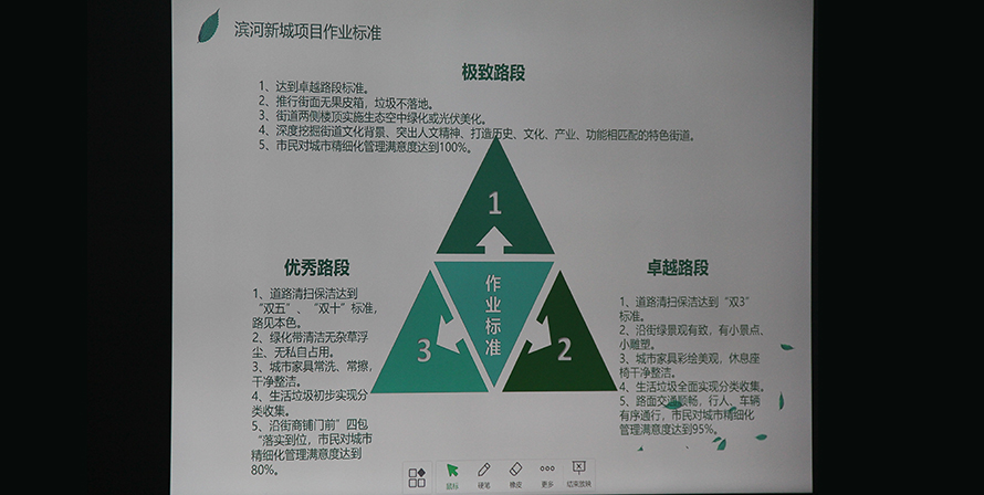 郑州滨河国际新城是郑州发展大都市区规划中经开新区组团的核心区域,东起四港联动大道,西至机场高速,南邻航空港区,北接国际陆港,区域定位为“产城融合,宜业、宜居、宜乐,三位一体”的中央休闲区(CLD),自贸资源重要承载区、海绵城市示范实验区。尊龙凯时人生就是搏环境滨河国际新城项目自2019年3月开始运营,区域参照郑州市道路管养一级标准,按照“双三”“双五”“双十”的路段标准进行维护管养。滨河国际新城市场化环卫服务为新城的发展提供了有力支撑,先进智能的环卫装备、整齐划一的运营团队、高精尖的管理人才,打造出了适应新城发展的环境卫生管理与作业新模式。