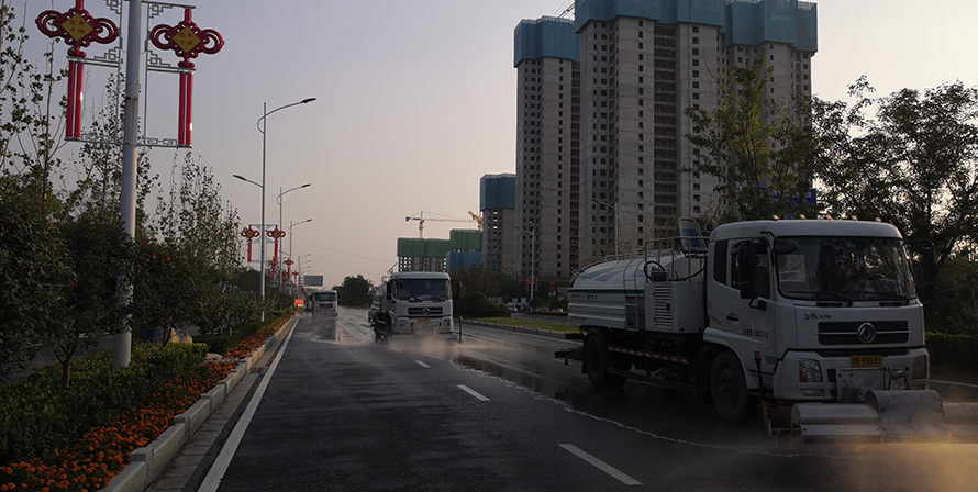滨河国际新城区域道路清扫保洁。
